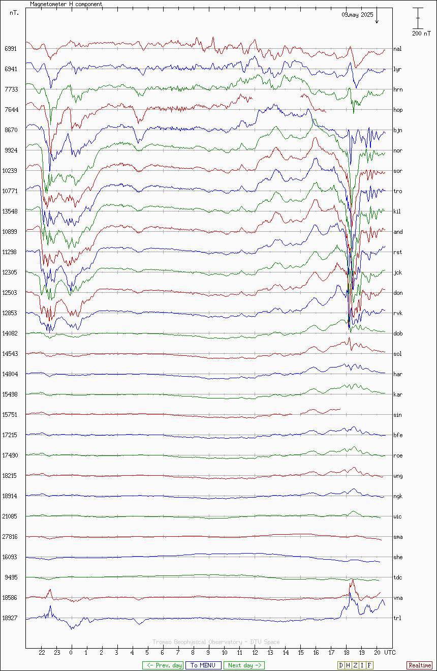 Wer sich nicht auf die “Kaffeesatzleserei” der meisten Apps und Prognose-Webseiten verlassen und sich etwas intensiver mit der Materie auseinandersetzen möchte, hat noch andere Möglichkeiten. Denn fast noch wichtiger als sämtliche Vorhersagen, ist in Island der IST-Zustand, ein Real-Time-Wert (zusätzlich zu den oben verlinkten Webcams). Das Leirvogur Magnetic Observatory, nördlich von Reykjavik angesiedelt, aktualisiert auf seiner Webseite die Messdaten alle 10 Minuten (meist um 13:02, 13:12, 13:22 usw.). Ausschlaggebend sei dort vor allem die horizontale Komponente des Erdmagnetfelds, hat man uns erklärt: Zeigt der mittlere H-Graph nur eine ruhige Linie, ist nichts los am Himmel. Geht es dort allerdings plötzlich steil bergab oder schwankt die Kurve wild auf und ab, sollte man a.s.a.p. sein Stativ draußen aufstellen gehen. Diese Messung ist sehr akkurat und der Zeitpunkt, an dem die Kurve besonders schnell absackt, stimmt immer exakt mit den allerbesten Shows überein. Für andere nordische Länder gibt’s noch einen schönen Stackplot z.B. -> hier.